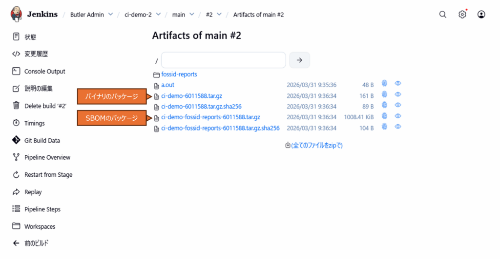 - バイナリ等と SBOM を配布場所に保存