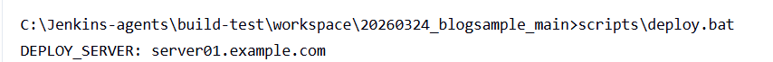 バッチ内にサーバー名やファイルパスがハードコードされている場合、そのままCI化するとエージェントごとに動かない問題が起きます。環境ごとに異なる値は、Jenkinsのパラメータや環境変数として外出ししておくと、例えばデプロイ先のサーバーの切り替え(開発環境・ステージング・本番など)が容易になります。