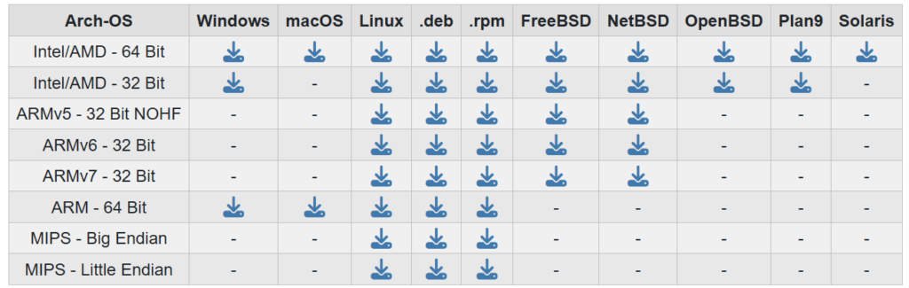 それ以外の環境については、公式サイト:Installのページを参照ください。